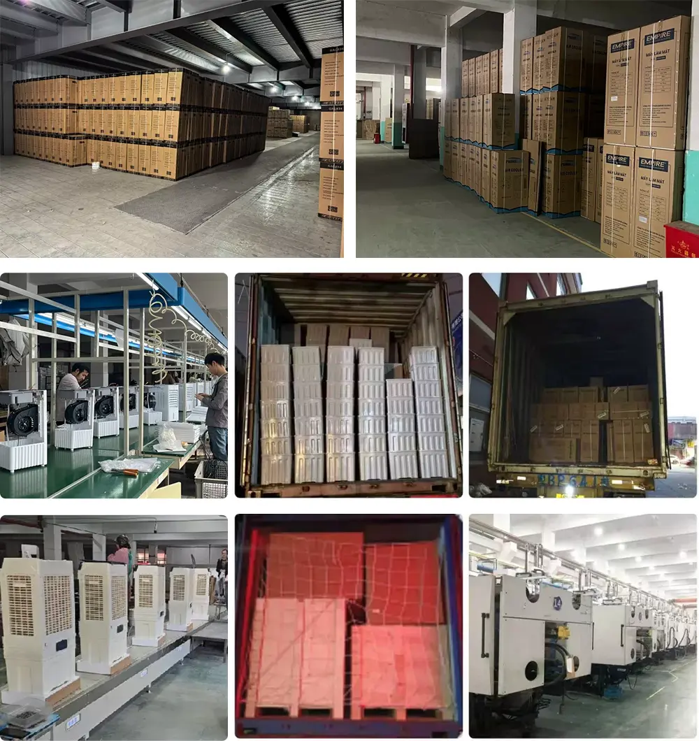 Con 30 anni di dedizione al settore dei raffreddatori d'aria, Koyer (Ningbo Keyi Electric Appliance) aderisce all'artigianato! Questa ventola di raffreddamento dell'aria AC DC portatile appena lanciata, prodotta dalla nostra fabbrica, è dotata di un serbatoio dell'acqua da 30 litri, velocità variabile, oscillazione automatica sinistra-destra e oscillazione manuale su-giù!